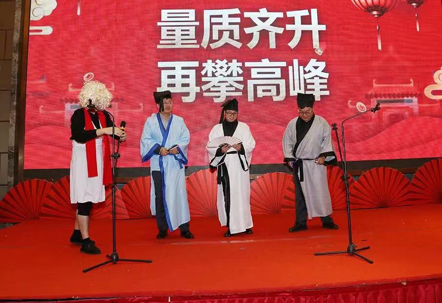 新春大联欢,全体群杰人欢聚一堂、把酒言欢。产品研发中心帅气的90后小伙伴,一只《breadking》街舞拉开表演序幕。华东大区的相声《四大才子》、人力资源中心的舞蹈《七仙女》、客户服务中心的小品《盖章2之客服姑娘》、品牌行政中心的《三句半》以及群杰家属团的《啦啦操》、动感街舞、单口相声《扎针》等精彩节目轮番上演。形式各异,精彩纷呈的节目让人不禁感叹,群杰真是卧虎藏龙,人才辈出。